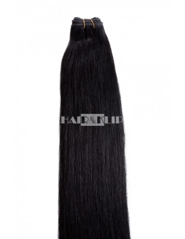 Extensiones de cortina de cabello cosido color Moreno Natural (Color 1). Cortina de pelo natural REMY AAA de 100 gramos de peso y 55-60 CM. Aunque se presenta lisa, se ondula cuando se lava y/o aplica espuma y difusor.